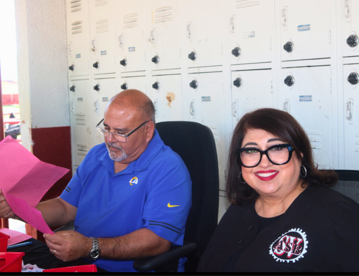 Left to right: Sierra Vista Middle School Counselors Martin Palacios and Maribel Verduzco snap a photo together.
